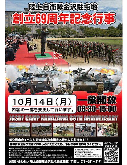 体験イベント ショー コンサート 2019年10月13日陸上自衛隊金沢駐屯地 創立69周年記念行事 台風19号のため 金沢情報web