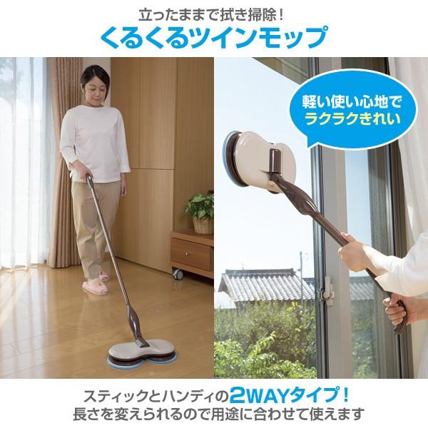 くるくるツインモップ El 70266 モップ 水拭き 床掃除 フローリング 回転モップ 掃除 清掃 クリーナー 雑巾掛け 雑巾がけ 雑巾 窓拭き くらしのeショップ 通販 Paypayモール
