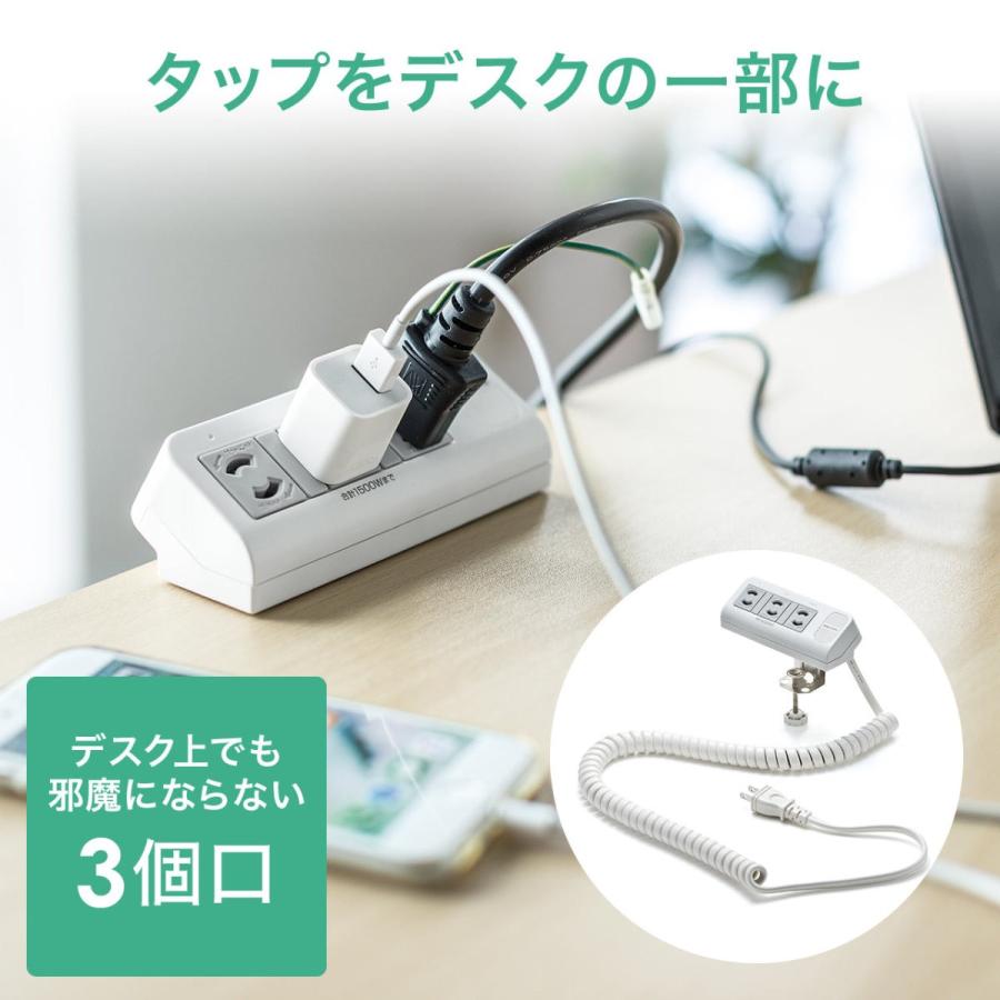 電源タップ 3個口 最大2m 延長コード コンセント Oaタップ コンセントタップ クランプ固定式 カールコード 伸縮 サンワダイレクト 通販 Paypayモール