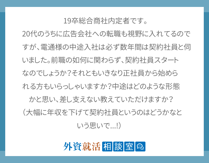 19卒総合商社内定者です 20代のうちに広 外資就活相談室