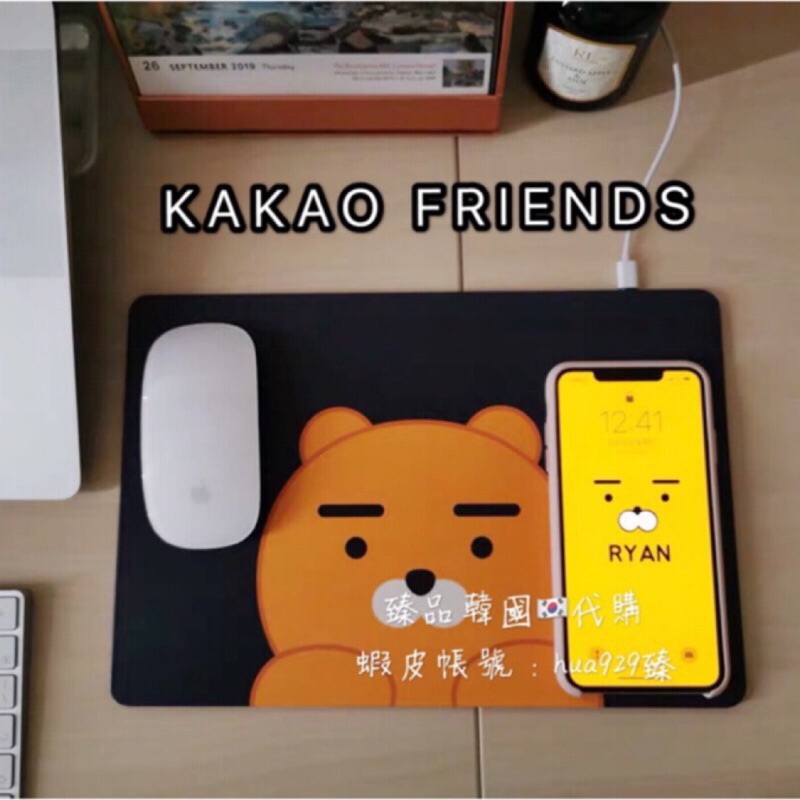韓國正品kakao Friends 萊恩手機無線充電器滑鼠墊蘋果iphone安卓通用 蝦皮購物