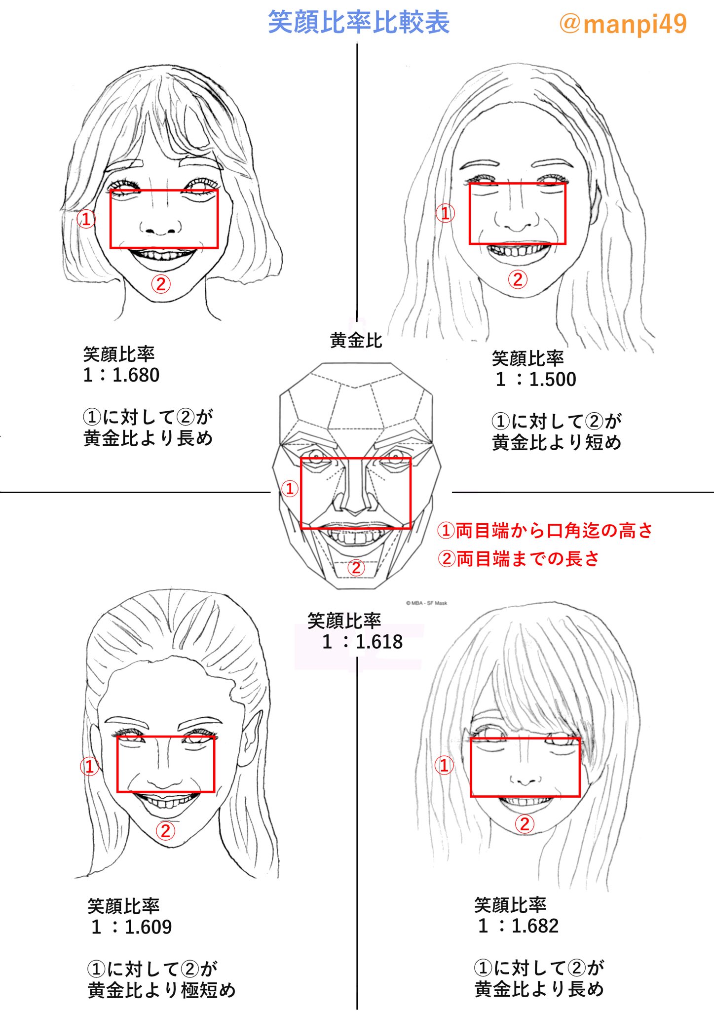 卯月 うづき お腹ぽっこり系顔タイプアドバイザー On Twitter 笑顔と黄金比の関係を私なりに考察しました 1 1 618が理想だそうですが 私個人としては比率関係無しにクシャッとなった笑顔大好きです 笑 笑顔の比率は笑い方を変えれば変動しますので ハリウッド
