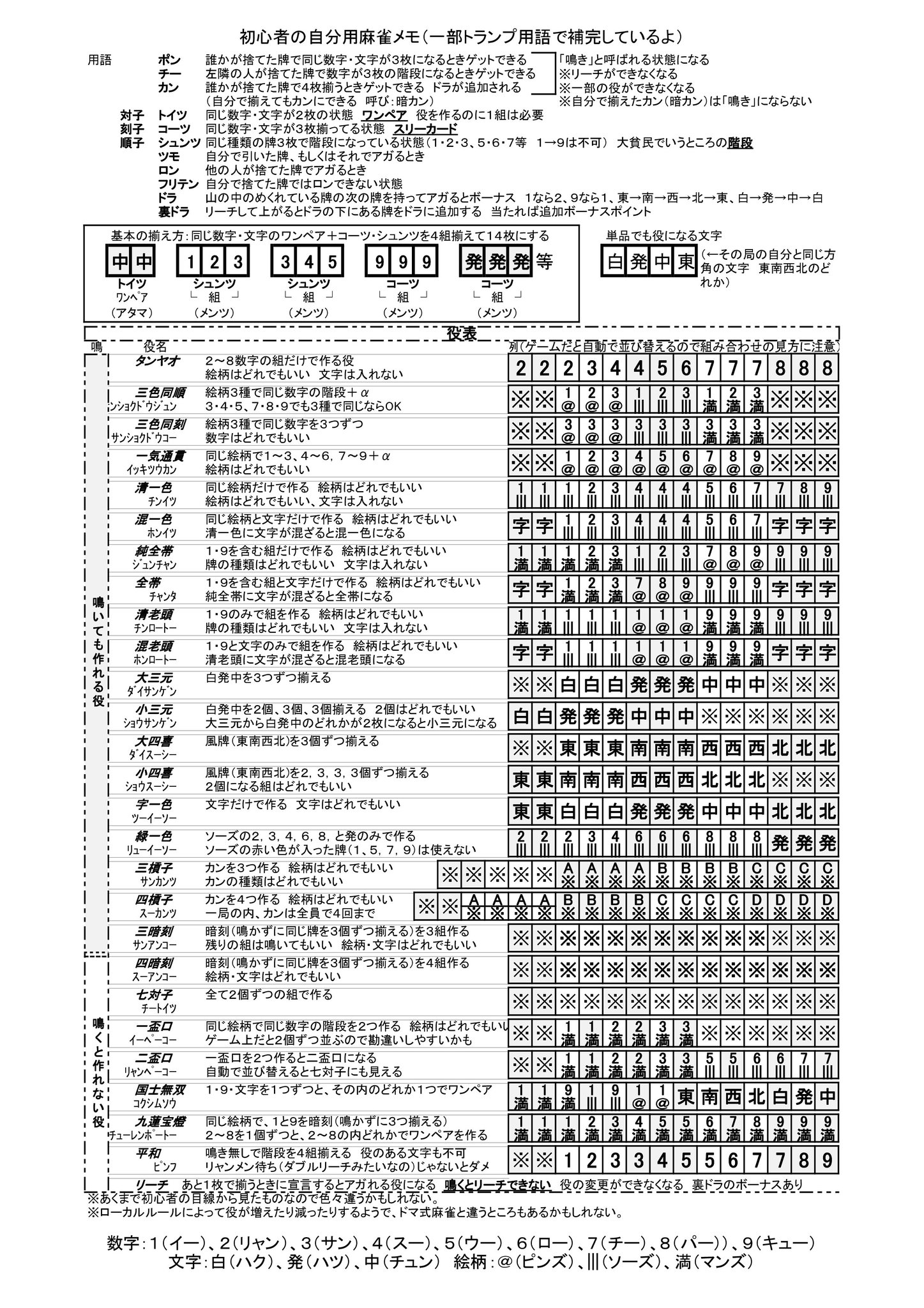 Mirri Ridill村 On Twitter 麻雀用の役のカンペを作っていたら半日かかってしまった でもなんとなくわかってきた気がする とりあえず 麻雀アプリでトレーニングを一通りやってみたところのメモまとめ 点数の計算は省略 Ff14 ドマ式麻雀