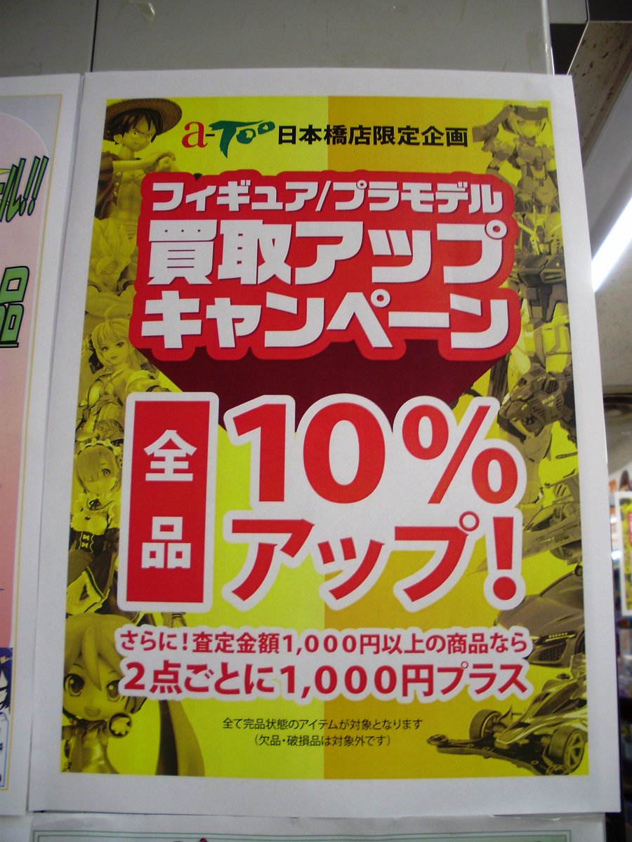 駿河屋 大阪日本橋本館 アカウントさんのツイート 4f 大好評エーツー日本橋店4fの買取アップキャンペーン 本日 2月1日からはフィギュア プラモデルのお買取は査定額から全品10 アップ 更に更に 買取査定額1000円以上の商品であれば2点毎に1000円アップ ᕙ