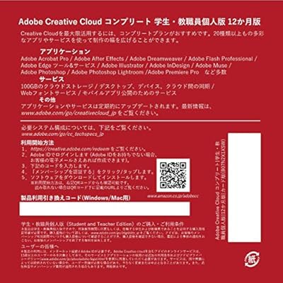 Amazon Adobe Creative Cloud アドビ クリエイティブ クラウド コンプリート 学生 教職員個人版 12か月版 Windows Mac対応 パッケージ カード コード版 グラフィック統合ソフト ソフトウェア