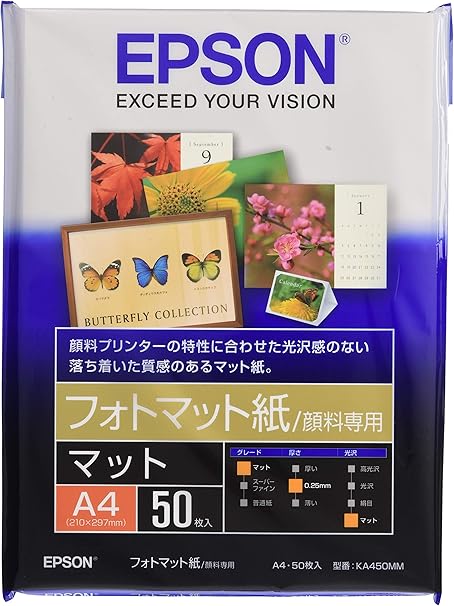 Amazon Epson フォットマット紙 顔料専用 A4 50枚 Ka450mm フォト用紙 文房具 オフィス用品