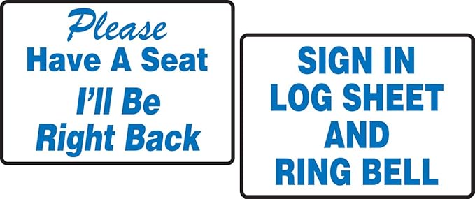 Tabletop Signs Please Have A Seat I Ll Be Right Back Sign In Log Sheet And Ring Bell Alliance Safety Inc
