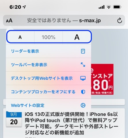 Ios 13新機能 Webブラウザー Safari で文字サイズ変更が可能に Pdfでページ全体保存やデスクトップ表示 リーダー表示 共有などのやり方が変更 ハウツー S Max