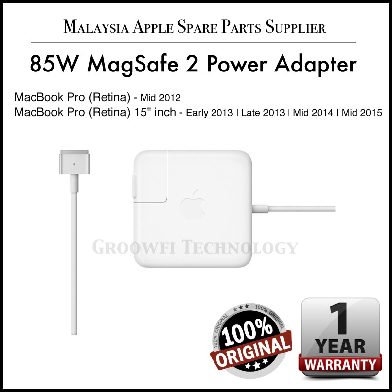 New Original Apple Macbook Pro Retina 15 Inch 2013 2014 2015 85w Magsafe 2 Power Adapter Charger Shopee Malaysia