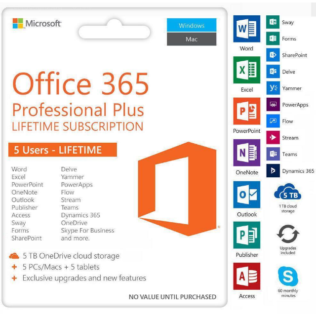 Microsoft Office 365 Pro Plus 5 Devices Pc Mac Ios Android Lifetime Account Softwarefastkey